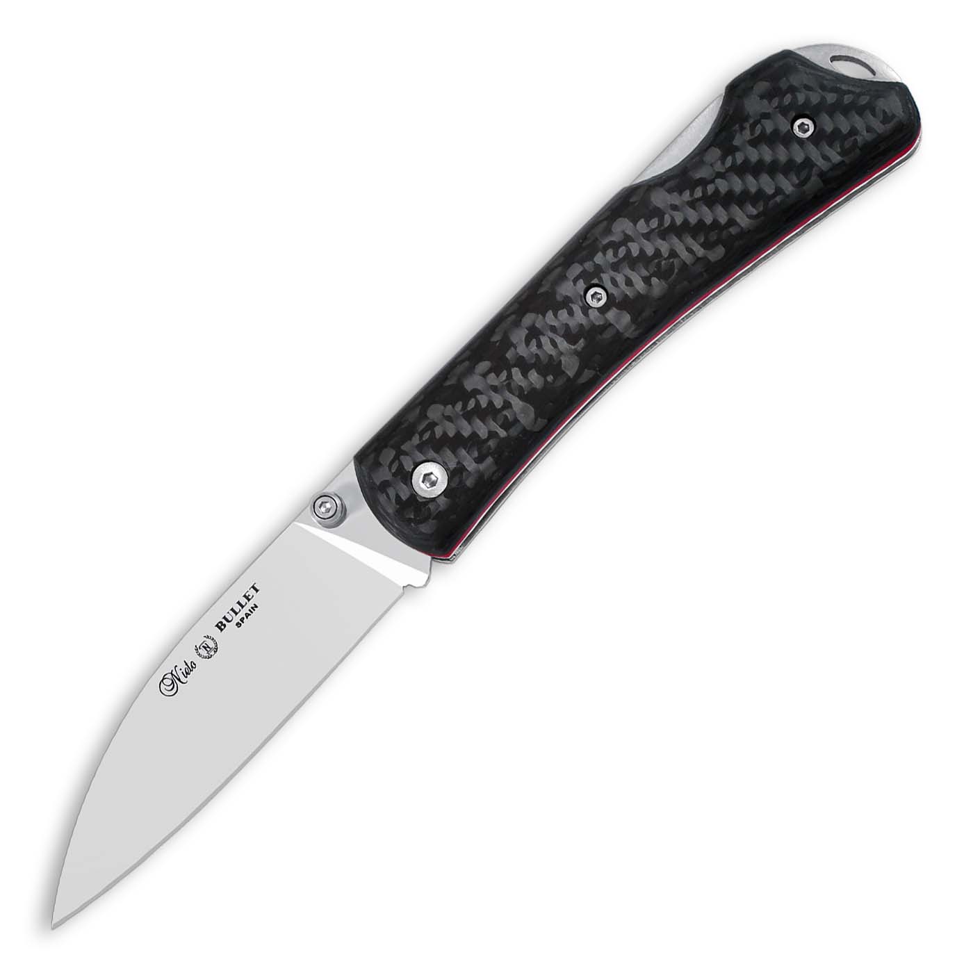 Premium Σουγιάς Κυνηγιού BULLET Η εργονομική του λαβή είναι κατασκευασμένη από Carbon Fibers και η λεπίδα του από ανοξείδωτο χάλυβα Βohler n690 . Ο σχεδιασμός του έχει γίνει εξ'ολοκλήρου στο εργαστήριο της Miguel Nieto στο Albacete της Ισπανιας.