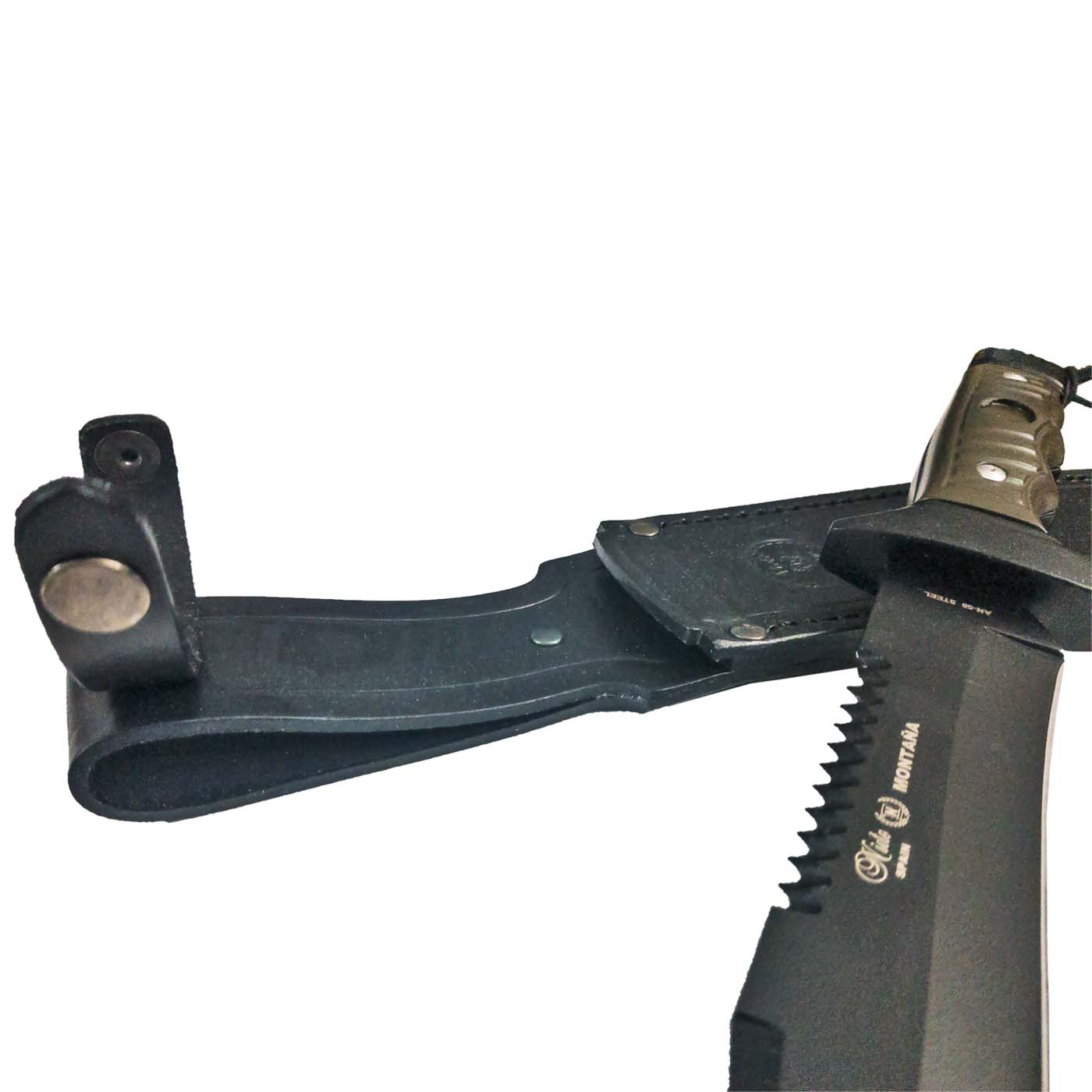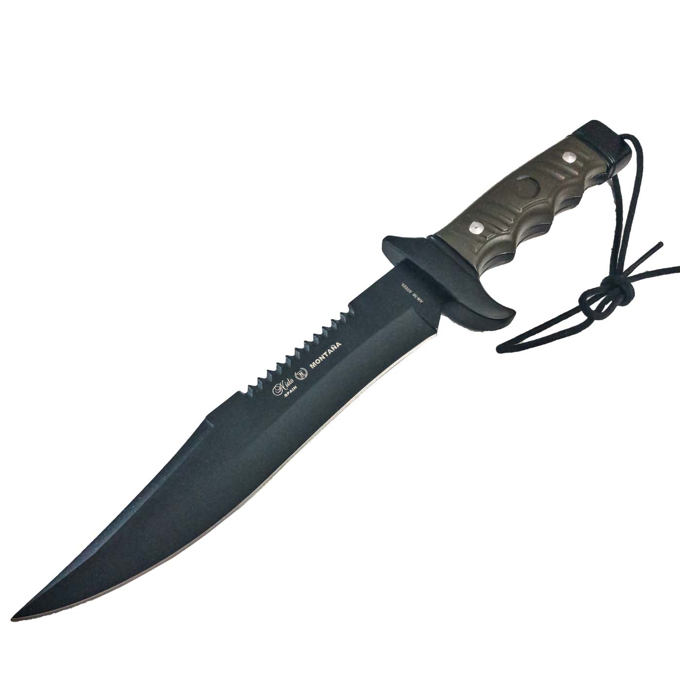To μοντέλο Montana της εταιρίας Miguel Nieto είναι ένα μεγαλο και επιβλητικό μαχαίρι. Η μαύρη λεπίδα τύπου νυχιού από χάλυβα ΑΝ-58 θα μείνει αιχμηρή σαν ξυράφι ακόμα και μετά από επαναλαμβανόμενη χρήση. Το χέρι σας θα αγκαλιάσει την εργονομική λαβή από ρητίνη και αλουμίνιο δίνοντας τη στοιβαρότητα που χρειάζεται. Περιλαμβάνει δερμάτινη θήκη σαν κι αυτές που μόνο η MIGUEL NIETO παραδίδει.