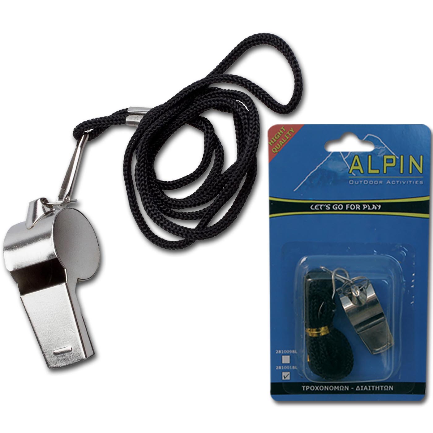 Σφυρίχτρα μεταλλική με φυσικό φελλό στραγάλι με κορδόνι. ALPIN Οutdoor Co
