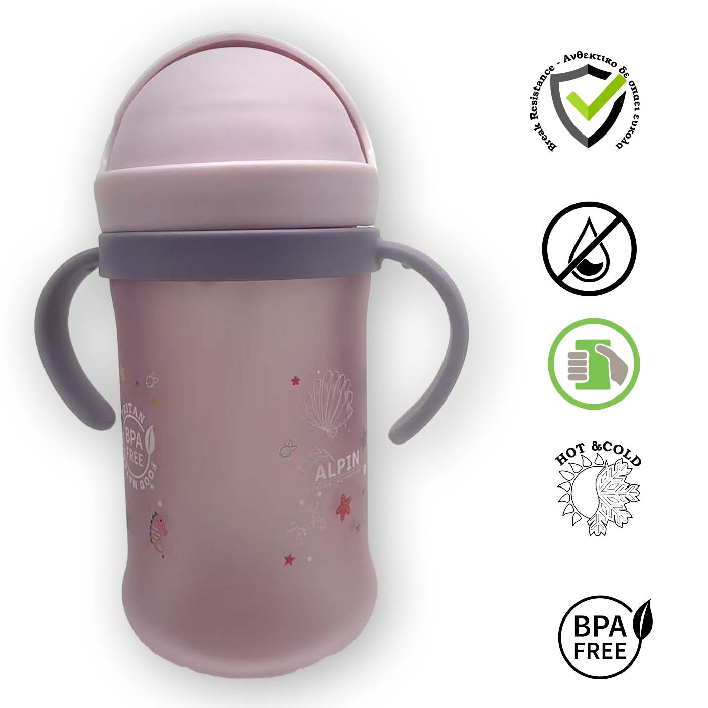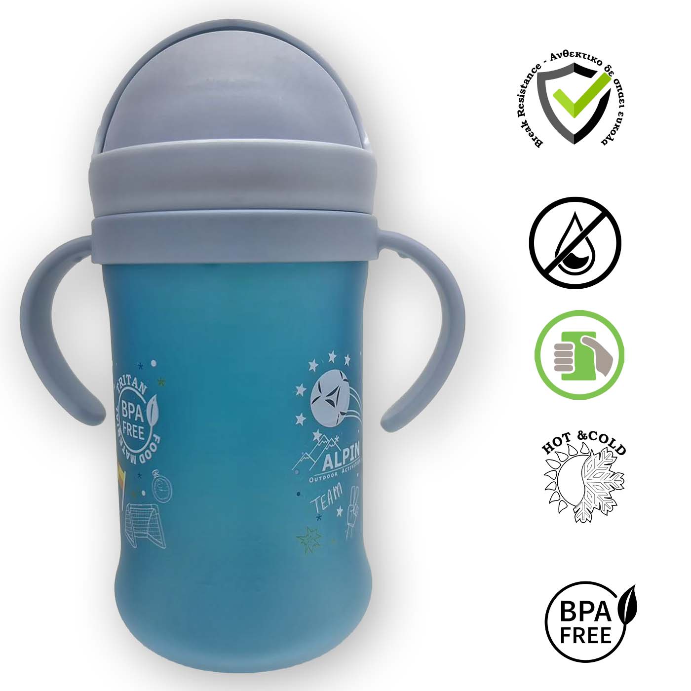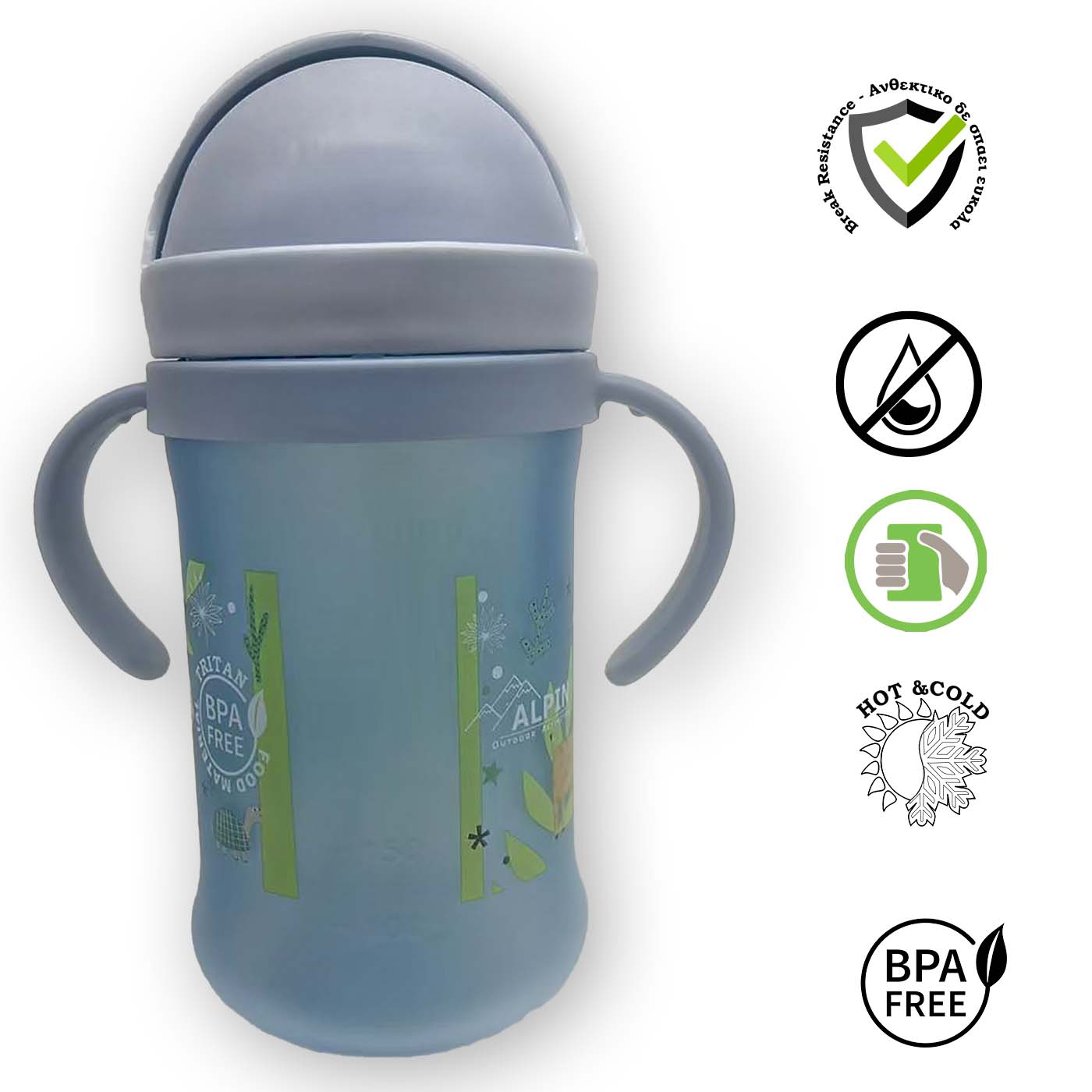 - Τα παγουρίνο της Alpin Kids ακολουθούν την ανάπτυξη του παιδιού σας. Καθώς έρχεται με χεράκια για την νεαρή ηλικία μπορούν να αφαιρεθούν για πιο εύκολη χρήση και αποθήκευση στη τσάντα αργότερα όταν μεγαλώσει